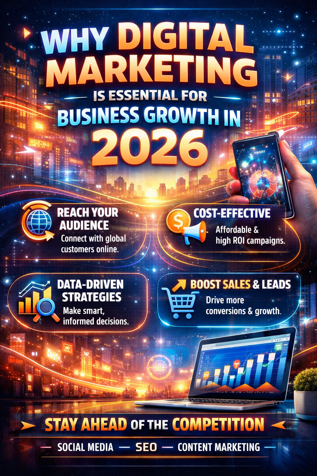 In 2026, digital marketing is no longer an optional strategy—it is a core requirement for business survival and growth. With consumers spending more time online than ever before, businesses that fail to establish a strong digital presence risk losing visibility, credibility, and customers to competitors.